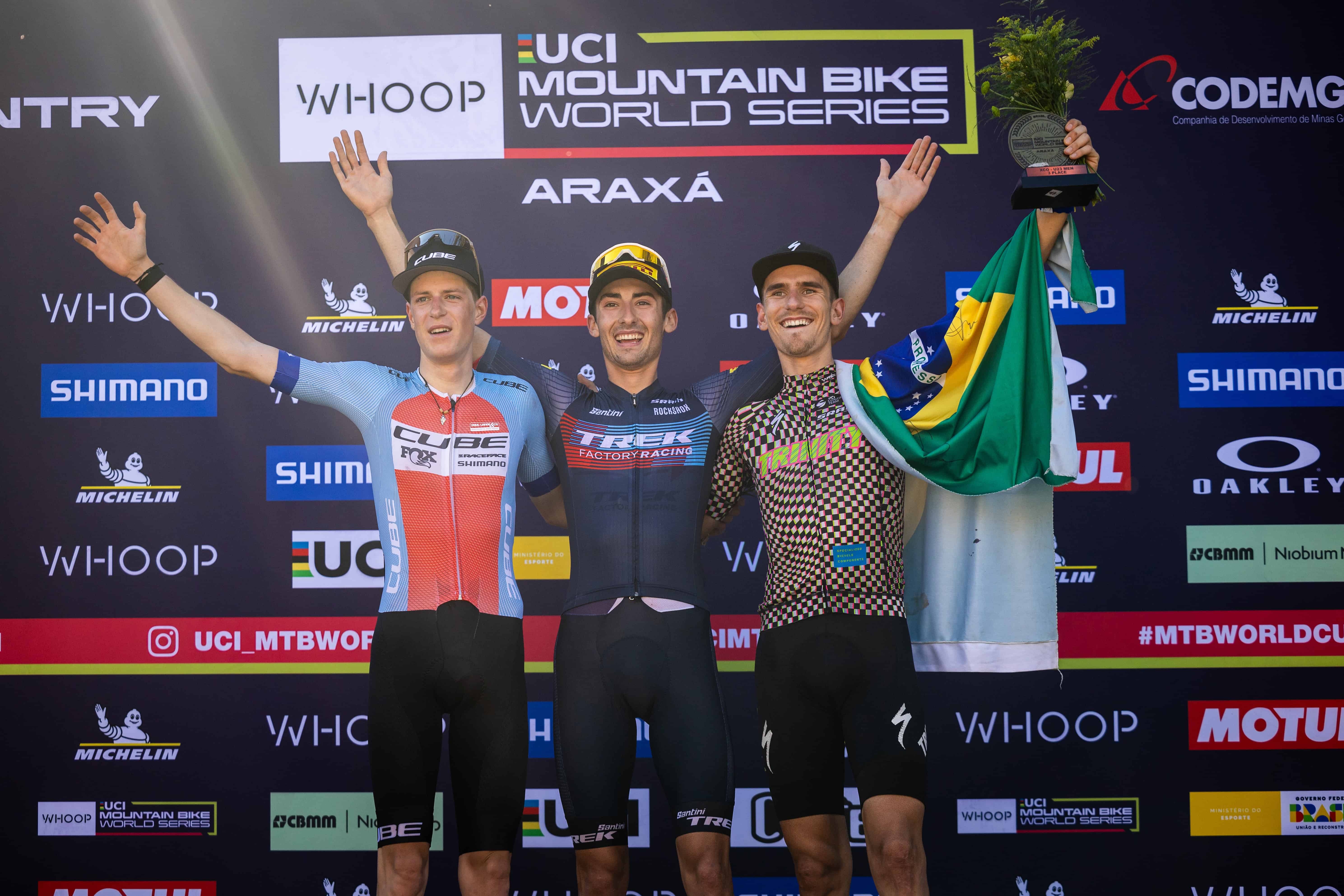 Riley Amos (Trek Factory Racing-Pirelli) wrapped up yet another perfect weekend in the WHOOP UCI Mountain Bike World Series, sealing victory in the U23 UCI Cross-country Olympic World Cup (XCO) in Araxá on Saturday, following his win in the U23 UCI Cross-country Short Track (XCC) World Cup on Friday. It marked the second double victory for the American following his 100% record in Mairiporã on round one last weekend.