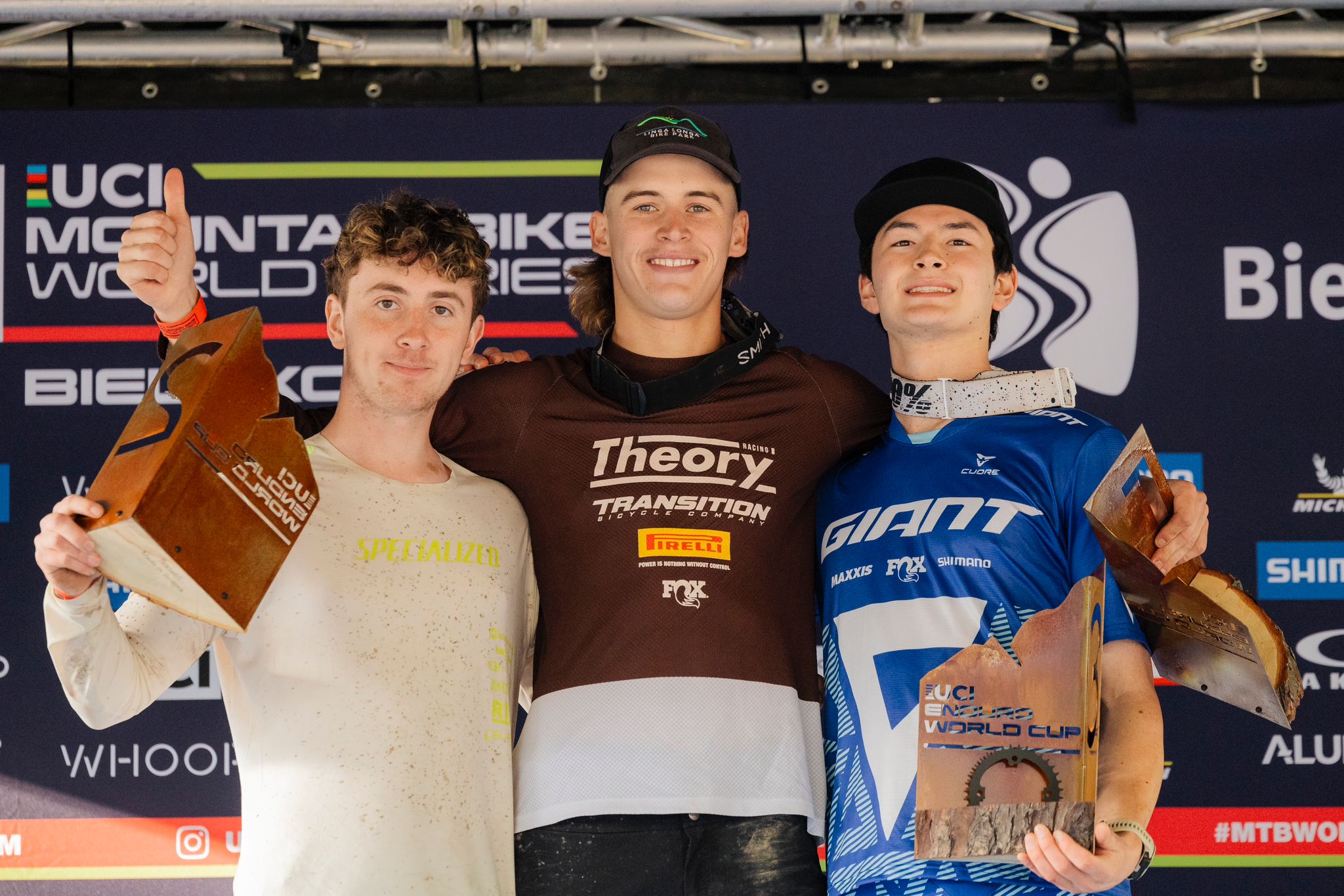 The men’s race would finish even closer, and it would be heartbreak for Slawomir, who won his third straight stage but missed out on his first UCI Enduro World Cup win by 0.095 seconds. Murray was the man to break the local’s hearts, retaining the position he’d held since stage two and just doing enough with his fourth place on the final stage to take his first UCI Enduro World Cup. Last year’s overall champion Rude would go second fastest on the stage to finish third overall, with Moir (4th) and Melamed (5th) completing the podium.