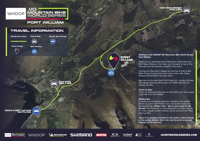 If you’re planning on joining us for the ultimate weekend of mountain bike racing, make sure to read the travel information carefully before you set off on your journey. We’re anticipating the roads around Fort William will be buzzing during the UCI Downhill World Cup, so plan your journey ahead of time…