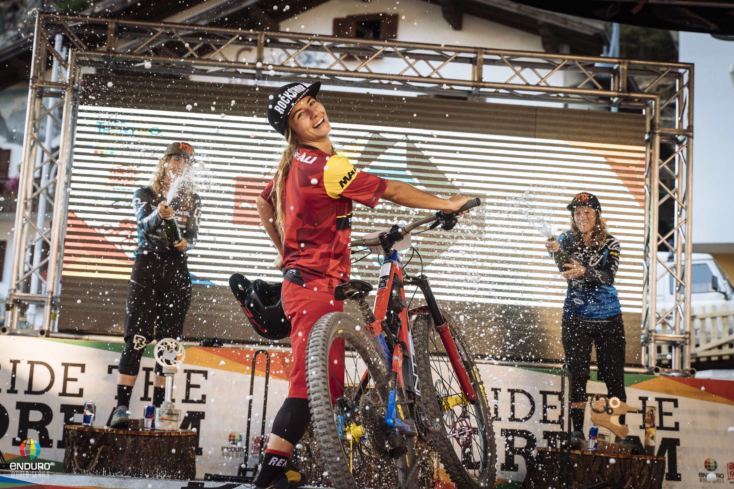 Courdurier didn’t let the disappointment get to her though and was back on the top spot in arguably the biggest race of the season just one week later. The Frenchwoman dominated the UCI Mountain Bike Enduro World Championship from the off, winning the first two stages to build an unassailable lead in Val di Fassa, Trentino, with her compatriot Pugin the only rider who could get within a minute of her.