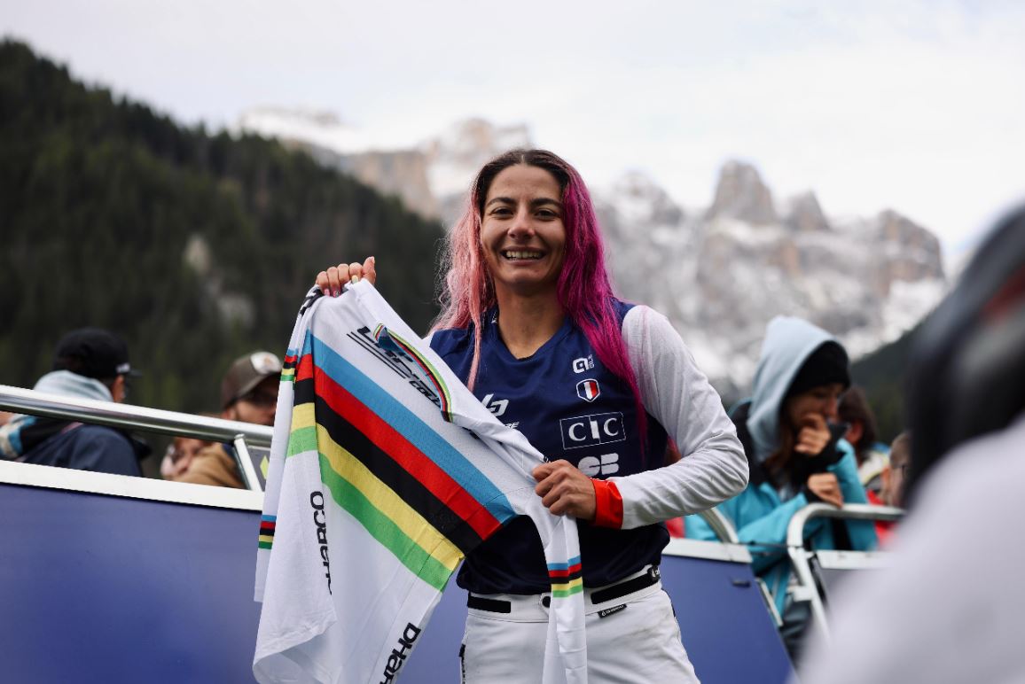 She was on course to become the all-time best but was overhauled on the very last day of racing – Harriet Harnden (Trek Factory Racing Gravity) winning the title by 21 points to stop any chances of a fairytale ending. But just one week later, she put any disappointment behind her to win the rainbow jersey in the Italian Dolomites.