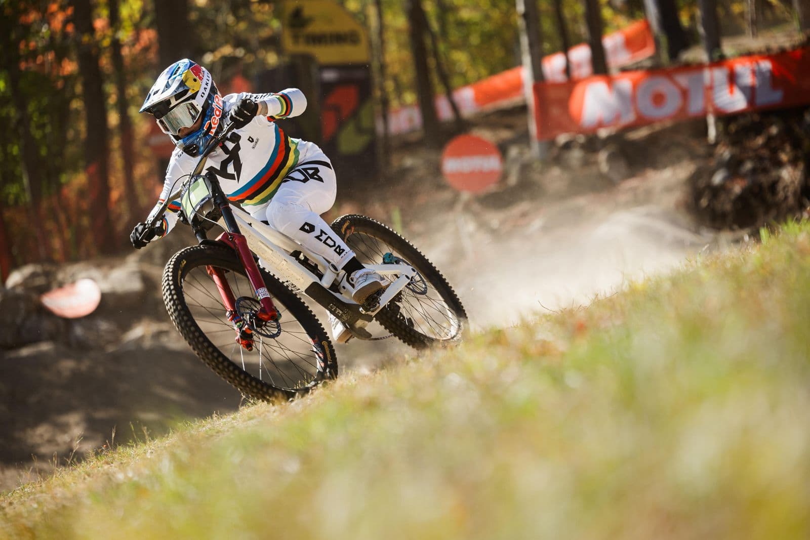 Jackson Goldstone (Santa Cruz Syndicate) clinched the Men Elite UCI Downhill World Cup overall title in the most dramatic of circumstances in his home country at Mont-Sainte-Anne (Canada), presented by Events.com. Meanwhile, Marine Cabirou (Canyon CLLCTV Factory Team) took her 11th career UCI World Cup victory following an enthralling end to the women’s Elite category. Coming into the weekend Goldstone was locked in a battle for overall honours with quickest qualifier Loïc Bruni (Specialized Gravity). However, a crash for Bruni in a training run resulted in the Frenchman suffering a thigh injury and not taking to the track for finals. In front of his home crowd Goldstone rose to the pressure and put down a winning run, putting Luca Shaw (Canyon CLLCTV Factory Team) into second and early starter Andreas Kolb (YT Mob) into third. The women’s Elite event was equally as dramatic after the top three riders overall all had issues on the Mont-Sainte-Anne (Canada) course. Valentina Höll (YT Mob) suffered a flat tyre in the finals, Gracey Hemstreet (Norco Race Division) crashed out, and Tahnée Seagrave (Orbea/FMD Racing) pulled out of qualifying with a back injury. Cabirou had no such problems narrowly beating Nina Hoffmann (Santa Cruz Syndicate) into second, while fastest qualifier Myriam Nicole (Commencal/Muc-Off by Riding Addiction) finished third. American riders Asa Vermette (Frameworks Racing/5DEV) and Aletha Ostgaard (Canyon CLLCTV Factory Team) replicated their quickest qualifying runs to win the men’s and women’s Junior categories respectively. Vermette also finished in the quickest time of the weekend of 3:29.7 – over three tenths quicker than Goldstone. Proving their consistency Max Alran (Commencal/Muc-Off by Riding Addiction) and Rosa Zierl (Cube Factory Racing) also held their nerves to seal the junior overall victories. GOLDSTONE RISKS EVERYTHING AND MASTERS HOME COURSE Youngster Jackson Goldstone (Santa Cruz Syndicate) completed the perfect season as he wrapped up the overall UCI Downhill World Cup series. The 21-year-old also matched the record of five Men Elite UCI Downhill World Cup wins in the same season of Aaron Gwin. The previous day Bruni set the quickest qualifying time of 3:33.5 and had to finish on the podium to seal the overall title. However, after Goldstone flew down the slope in 3:30 and took the lead. Bruni then opted not to start due to a thigh injury sustained in practice, stunning his rival and handing him the overall honours. After qualifying through Q2 the previous day, Ryan Pinkerton (Mondraker Factory Racing DH) had a point to prove early in the field. The young American set a benchmark time of 3:33.05, which was quicker than Bruni’s quickest qualifying time the previous day and earned him a fifth placed finish. Andreas Kolb (YT Mob) crashed in the previous day’s Q1 and had to book his final spot through Q2. The Austrian showed no fear with huge jumps into the rock garden and was one second faster than Pinkerton in a new benchmark time of 3:32.3. The rock gardens caused havoc all weekend, with Martin Maes (Orbea/FMD Racing) suffering a flat tyre before Lachlan Stevens-McNab (Trek Factory Racing DH) crashed out. Kolb’s blistering time stood the test of time until Ronan Dunne (Mondraker Factory Racing DH) made his mark on the course. The Irish rider led by seven tenths before his tyre exploded on a rock following a heavy landing to end his run. American Dakotah Norton (Mondraker Factory Racing DH) was next to challenge the time of Kolb, but despite gaining time on the final rock garden with his high-rise bars he finished just three tenths slower to finish fourth. All the pressure was on young UCI Downhill World Champion, Goldstone, who flew out of the starting gate on his home course and was in contention from the opening turns. Fighting through the trees Goldstone maintained his speed with huge jumps as he tripled over the difficult rock garden to maintain his speed. Goldstone mastered the final sector to finish two seconds faster than Kolb to go quickest and send the Mont-Sainte-Anne crowd wild. Penultimate starter Luca Shaw (Canyon CLLCTV Factory Team) showed his experience with a controlled performance and was a second slower than Goldstone in the top sectors. Shaw gained momentum and charged through the rock garden to finish runner-up just two seconds behind Goldstone. The drama then unfolded as all eyes were on the starting gate for the final competitor of this year’s series. However, Bruni did not appear, and his team later announced the earlier injury suffered in practice. The result gave Goldstone the overall series victory by 178 points ahead of Bruni in second and Shaw in third. Following his victory Goldstone said: “I’m completely speechless. That was the run of my life. I knew I had to give it absolutely everything, it wasn’t pretty, I was making so many mistakes and getting super sketchy. The crowd were so amazing and cheered me on every step of the way. It didn’t feel quite right not battling with Loïc (Bruni) and I have no clue what happened. It’s not the way I wanted to win. I was hoping it to be a good fight right to the bottom, but we got it done at the end of the day. “I hardly got any sleep last night, it was staring at the roof for two hours as my mind was racing. I just had to try and focus on myself. It was quite testing for me. “I hope Loïc (Bruni) is alright. It was such a good battle with him this year, he’s someone I’ve looked up to my whole career and what an amazing rival to compete with. “It’s such a cool and friendly rivalry we’ve got and we’ll be battling again next year.” CABIROU FINISHES SEASON IN STYLE WITH VICTORY Marine Cabirou (Canyon CLLCTV Factory Team) repeated her win at Mont-Sainte-Anne from 12 months earlier by building her speed through the lower sections of the Canadian course and finishing her season in style. Young New Zealander Sacha Earnest (Trek Factory Racin